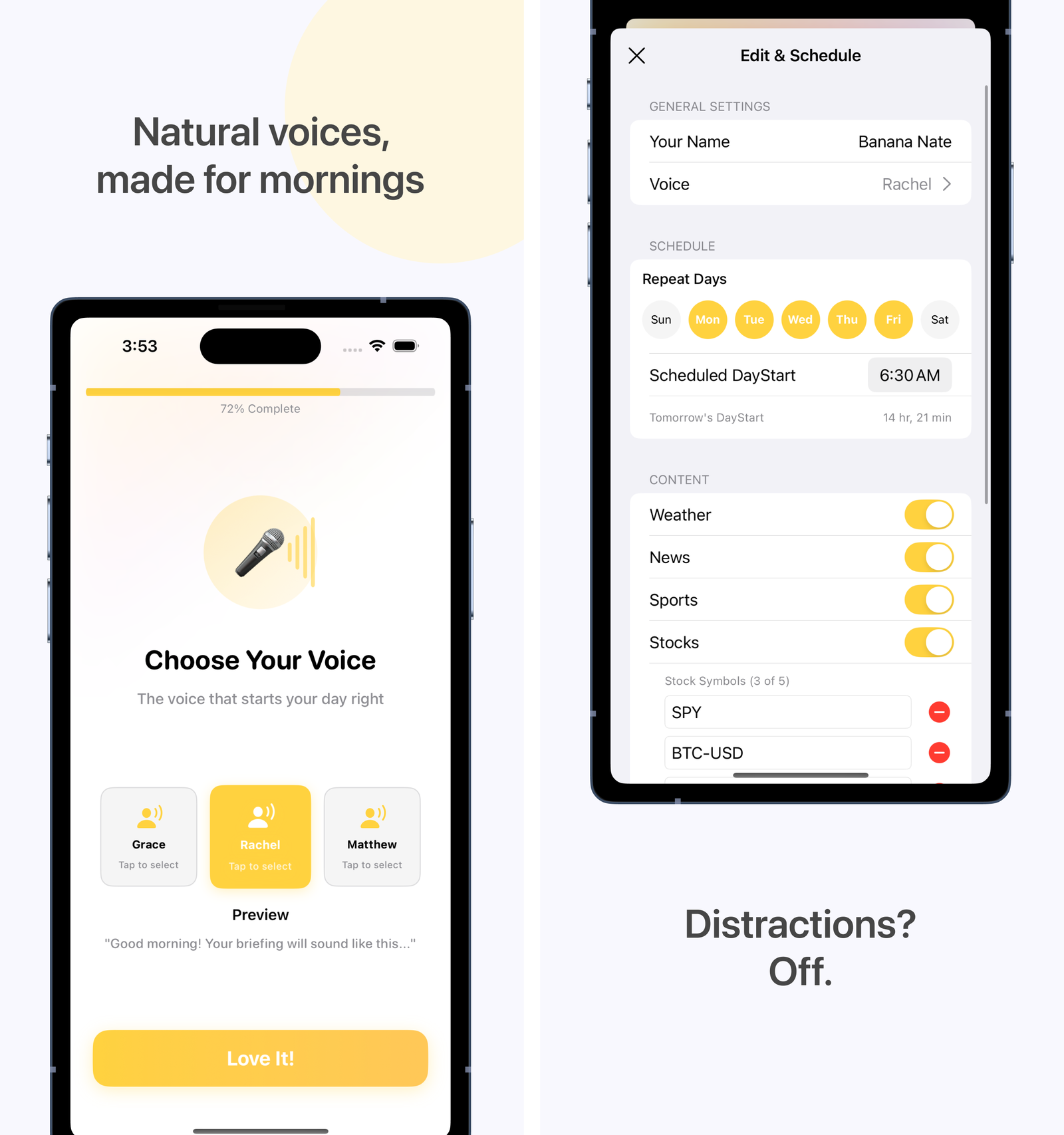 Choose your style: calm Zen guide, warm narrator, or focused drill sergeant.